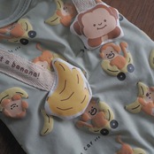 ●背中のポップなモンキーとバナナは立体ワッペンになっていてぷっくり可愛い